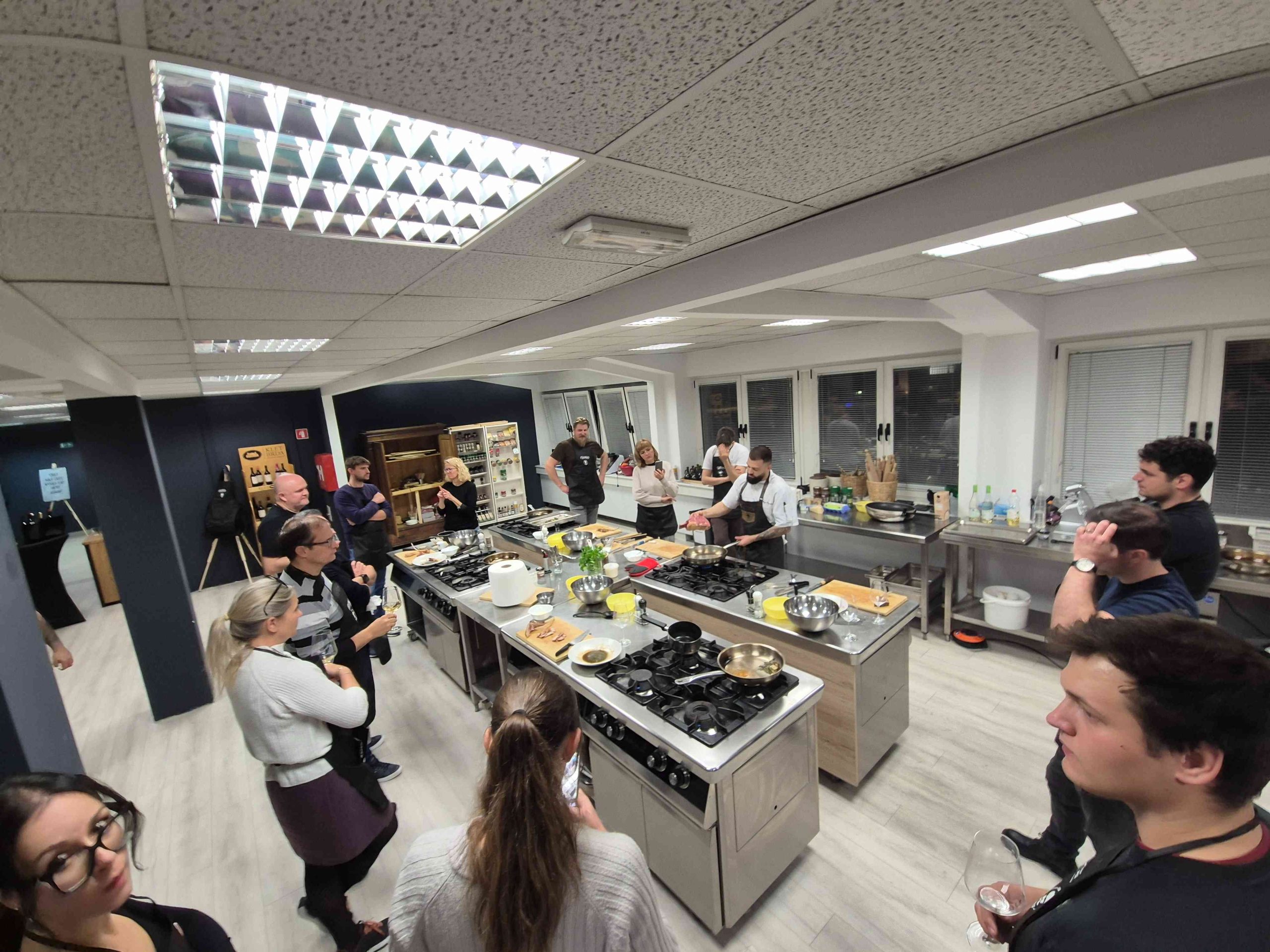 Po kratkem uvodu in chefovem prigrizku boste zavihali rokave. Najprej se boste ogreli s pripravo telečjih jetrc, kjer sta hitrost in natančnost ključni za popolno teksturo.